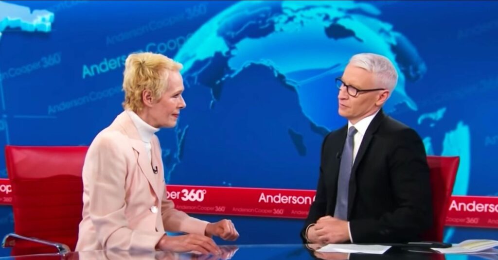 E. Jean Carroll appears on Anderson Cooper 360° in 2019 to discuss her sexual assault allegation against Donald Trump. During the interview, she described the alleged encounter and later made headlines for stating that “most people think of rape as sexy,” prompting Cooper to cut to commercial mid-segment.